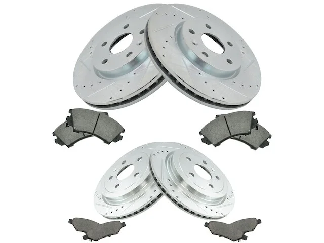 Package Contents: (2) Front Performance Brake Rotors; (2) Rear Performance Brake Rotors; (1) Front Ceramic Brake Pad Set; (1) Rear Ceramic Brake Pad Set; Brake Pad Contact Point Grease